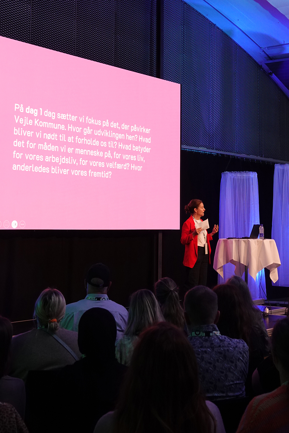 På dag 1 dag satte vi fokus på det, der påvirker Vejle Kommune. Hvor går udviklingen hen? Hvad bliver vi nødt til at forholde os til? Hvad betyder det for måden vi er menneske på, for vores liv, for vores arbejdsliv, for vores velfærd? Hvor anderledes bliver vores fremtid?